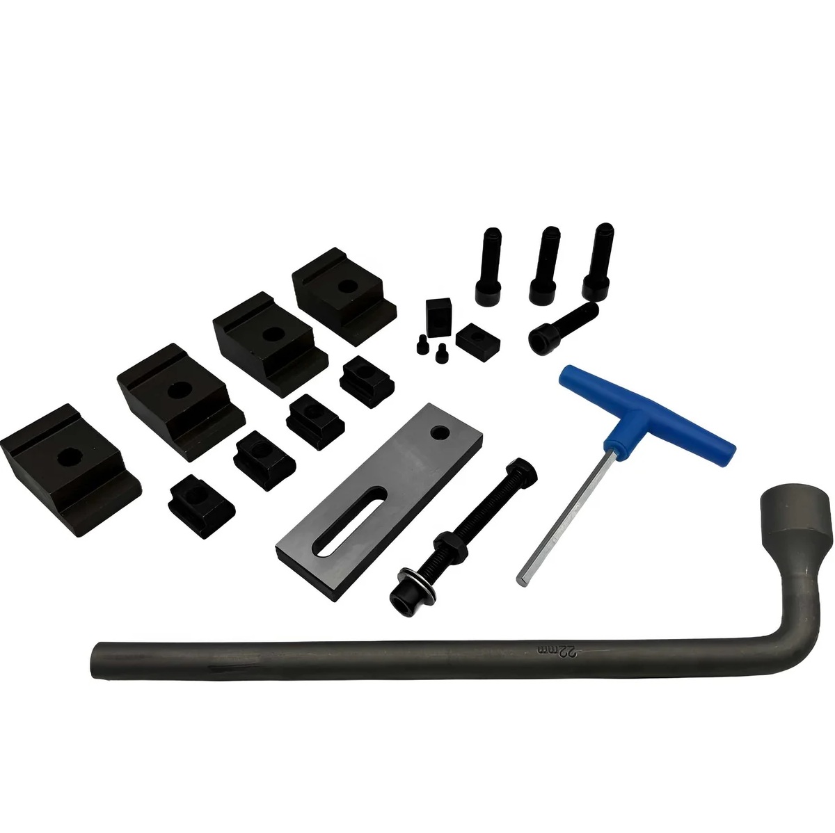 Тисы комплектуются прижимами и упором для надежного базирования детали.