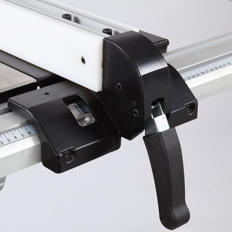 Параллельный упор, выполненный из алюминиевого профиля с накладками из фторопласта, с надежным фиксатором положения на направляющих.